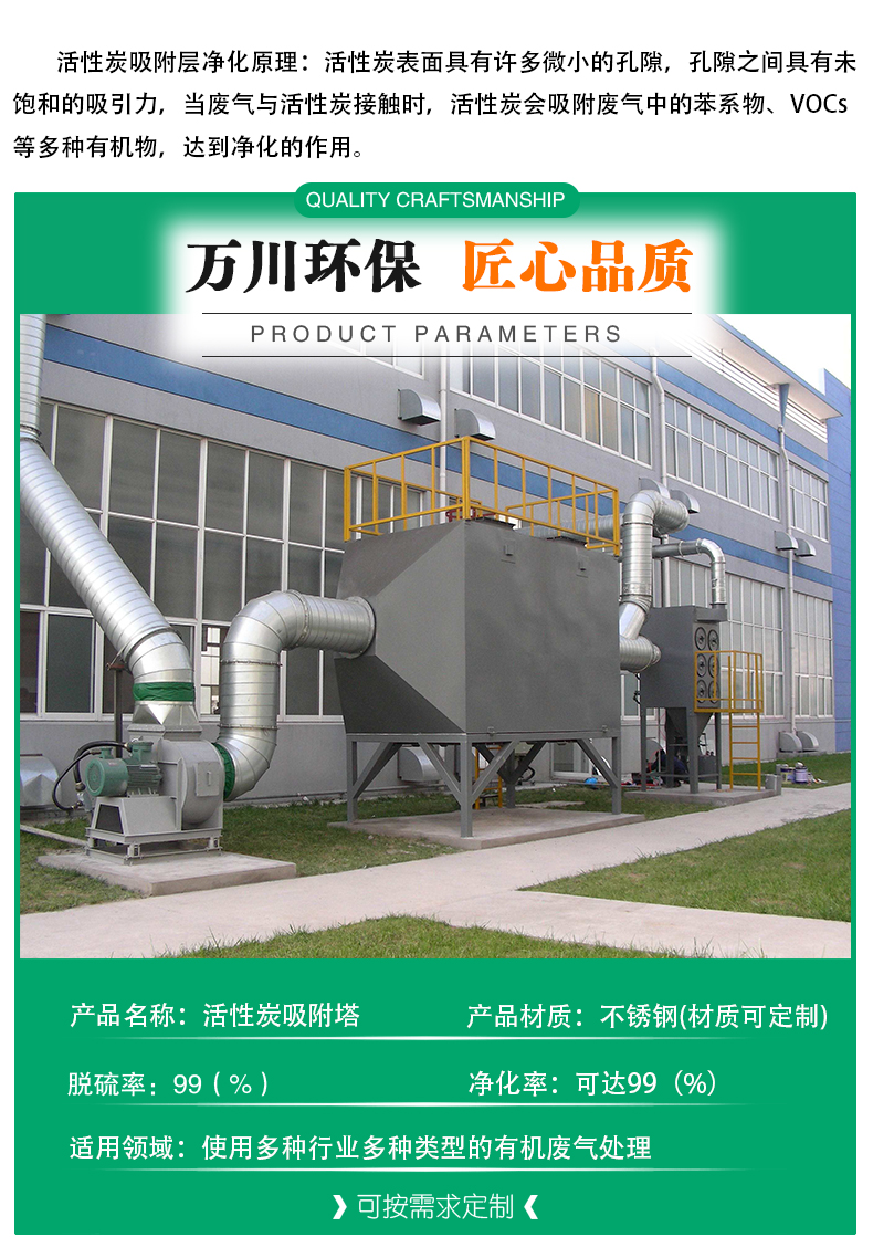 活性炭被廣泛應(yīng)用于工業(yè)上,再后來發(fā)明了活性炭吸附塔。活性炭吸附裝置是利用活性炭的原理設(shè)計(jì)而成的,活性炭表面具有許多孔隙,這些孔隙之間存在著吸引力,當(dāng)廢氣與活性炭接觸時(shí),可以吸附廢氣分子,所以在很多工廠都會看到活性炭吸附塔的身影。