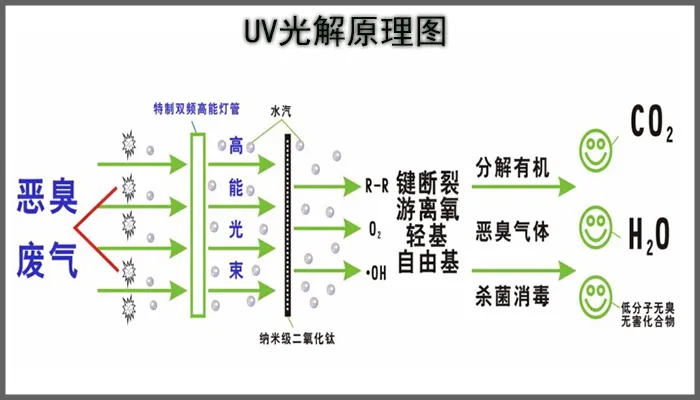 uv光氧催化處理設(shè)備是利用185nm波段的紫外線光束分解空氣中的氧分子產(chǎn)生游離氧,即活性氧,因游離氧所攜正負(fù)電了不平衡所以需與氧分子結(jié)合進(jìn)而產(chǎn)生臭氧。UV+02-0-+0* (活性氧)0+02 -03( 臭氧),臭氧對(duì)有機(jī)物具有強(qiáng)的氧化作用,對(duì)工業(yè)廢氣及其它小分子物有立華見影的清除效果。工業(yè)有機(jī)廢氣利用排風(fēng)設(shè)備輸入到本凈化設(shè)備后,凈化設(shè)備運(yùn)用253.7nm波段的紫外錢光東及185nm波段的紫外線光東產(chǎn)生臭氧對(duì)工業(yè)廢氣進(jìn)行裂解后氧化,使工業(yè)廢氣物質(zhì)其反應(yīng)轉(zhuǎn)化成水和二氧化碳,再通過排風(fēng)管道排出室外。下面小編介紹下關(guān)于uv光氧催化處理設(shè)備的一些小知識(shí).