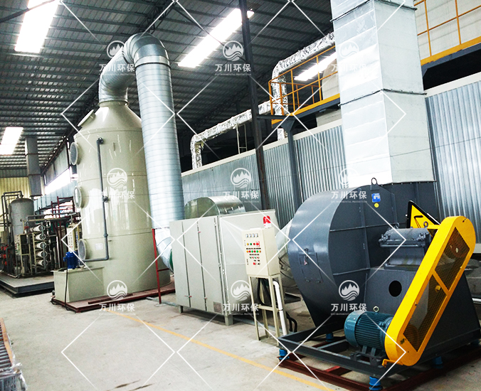 根據(jù)廠方提供的資料及現(xiàn)場(chǎng)勘察的情況。其噴漆廢氣的來(lái)源主要為無(wú)塵噴漆車間內(nèi)的5條自動(dòng)噴涂線。在生產(chǎn)過(guò)程中有噴漆,該工序產(chǎn)生了一定量含三苯有機(jī)廢氣和噴漆粉塵,該廢氣不僅對(duì)環(huán)境造成污染,而且對(duì)人體有較大的危害作用,同時(shí)也破壞了周邊的環(huán)境,造成了不良的影響,需進(jìn)行處理后排放。我們工程師分析了該廢氣的特點(diǎn)和以往的案例經(jīng)驗(yàn),采用了“水簾柜+噴淋塔+活性炭吸附塔”這套解決方案。