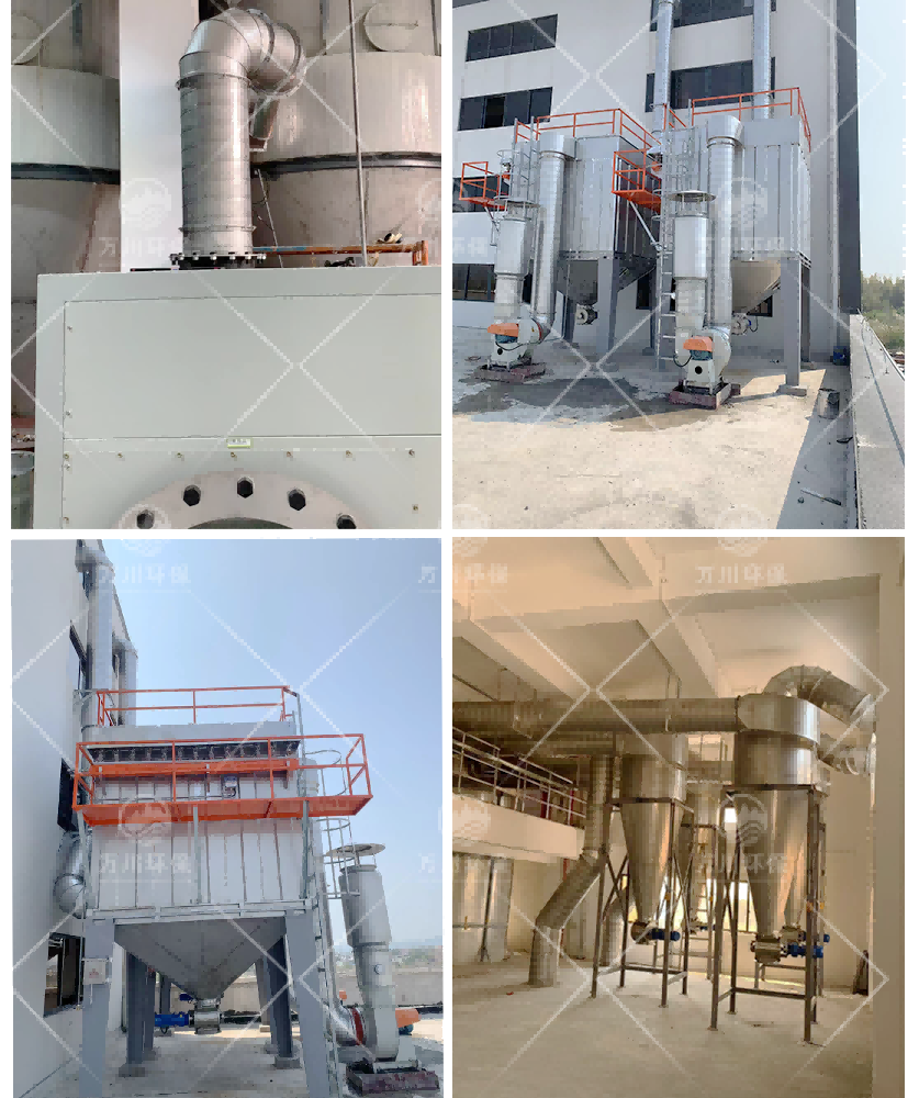 本次根據(jù)設(shè)計的方案共采用了4套旋風除塵器+脈沖除塵器組合工藝系統(tǒng)