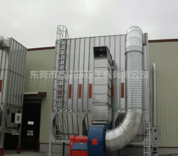 “含塵廢氣在風(fēng)機作用下,通過風(fēng)管收集進入脈沖布袋除塵器,含塵廢氣進入中箱體下部,在擋風(fēng)板形成預(yù)分離室內(nèi),粉塵因慣性作用落入灰斗。廢氣沿擋風(fēng)板向上到達濾袋,粉塵被阻留在濾袋外面,干凈氣體進入袋內(nèi),并經(jīng)過袋口和上箱體及風(fēng)機再排出。